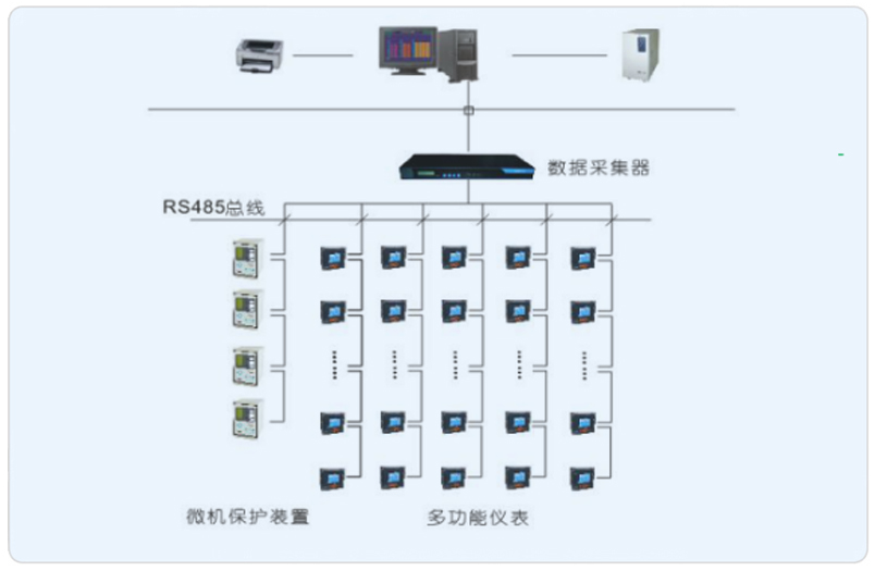 系統(tǒng)采用Acrel-2000型電力監(jiān)控系統(tǒng),分別在東西區(qū)各設(shè)置一套電力監(jiān)控系統(tǒng),實現(xiàn)對萬聯(lián)城東西區(qū)高低壓配電回路的實時監(jiān)控,有利于用電管理。另一方面,電力監(jiān)控系統(tǒng)不僅能夠準確的表示出回路的用電狀況,它還具備網(wǎng)絡(luò)通訊等功能,能夠與計算機、串口服務器等設(shè)備進行組合,從而實現(xiàn)遠程監(jiān)控。