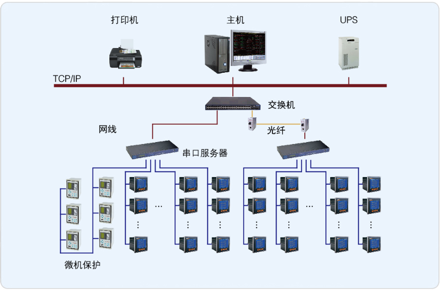 1. 對供配電系統運行的基礎數據采集,包括電氣設備的模擬量(電流、電壓、功率、電度、頻率等)和開關量(斷路器及隔離開關位置信號、繼電保護及自動裝置信號、設備運行狀態信號、以及各種事件信息等),并對采集的所有數據進行顯示、統計、分析、計算和存儲,并及時對發生的各種異常狀況進行報警提示,確保整個配電系統安全、可靠的運行;