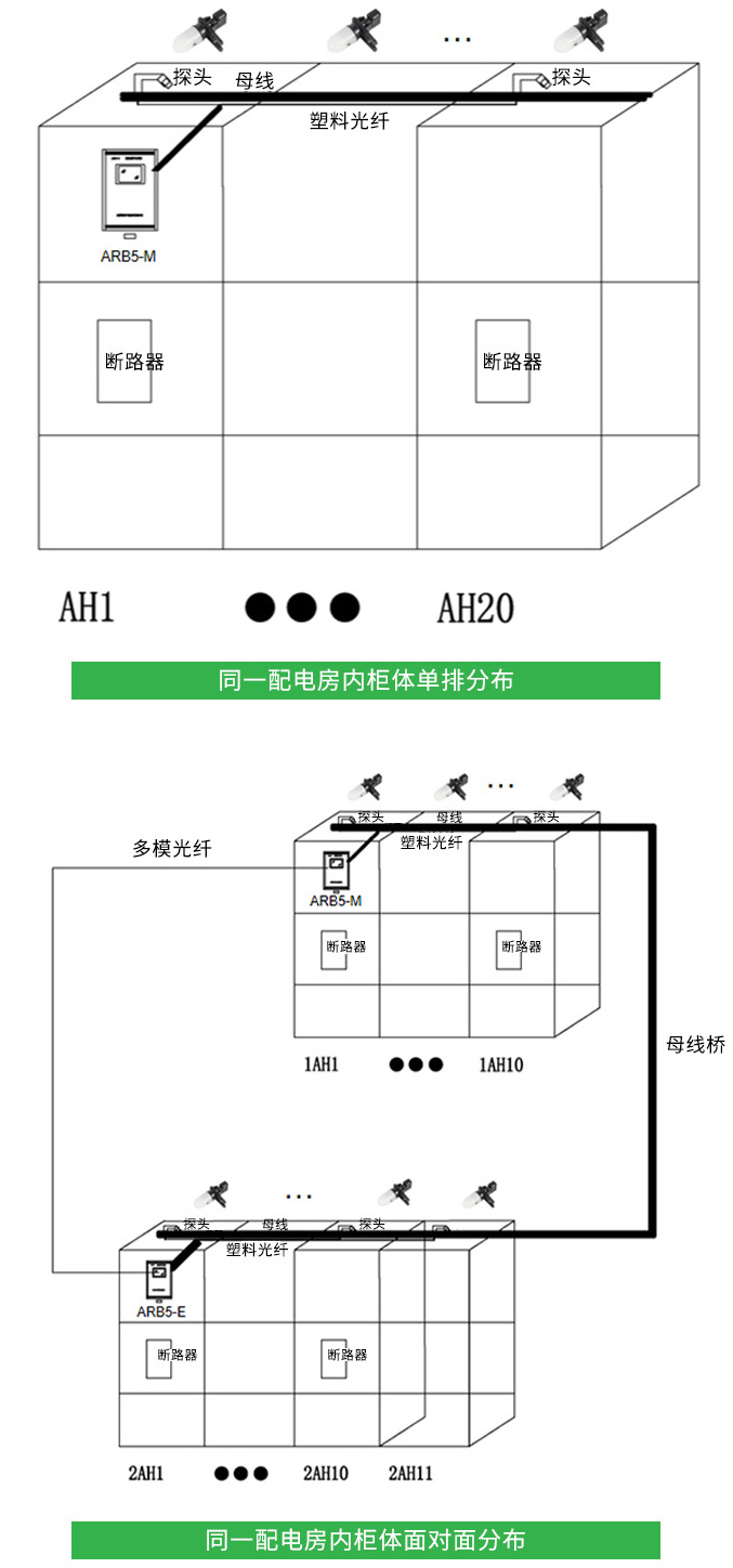 主控單元支持1塊弧光主控板信號接收,同時本身自帶9個弧光探頭的采集信號;