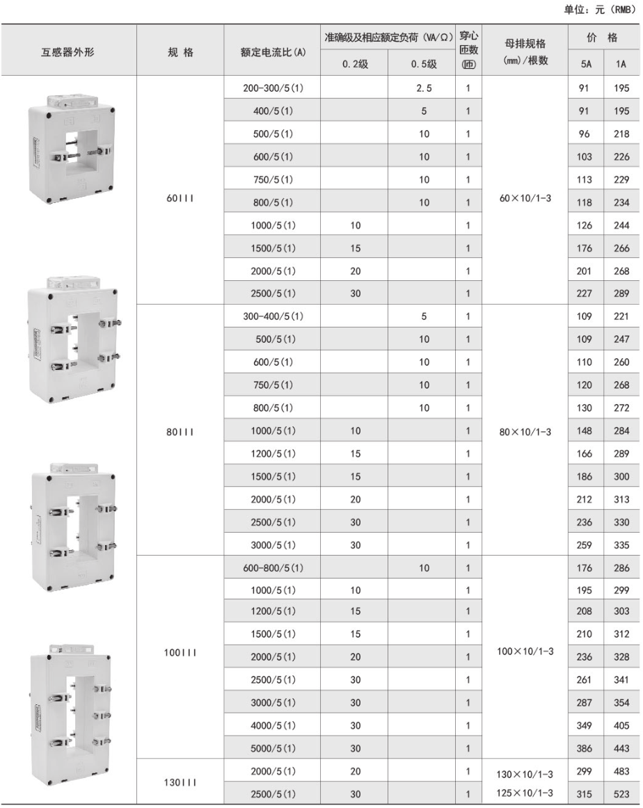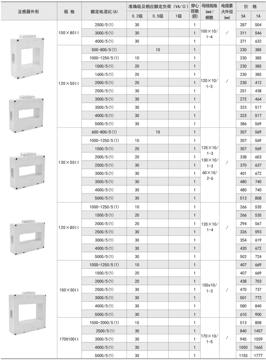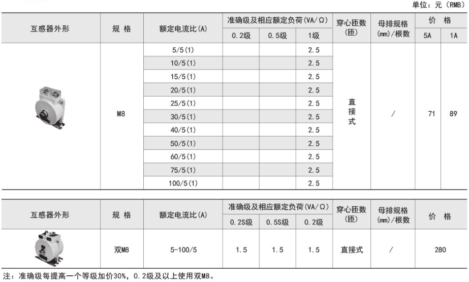 技術(shù)要求:額定電流比100A/5A; 準(zhǔn)確級(jí)1級(jí); 穿心匝數(shù)1匝;額定負(fù)荷1.5VA;內(nèi)孔徑φ22mm;穿排規(guī)格30mm x 10mm 1根。