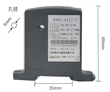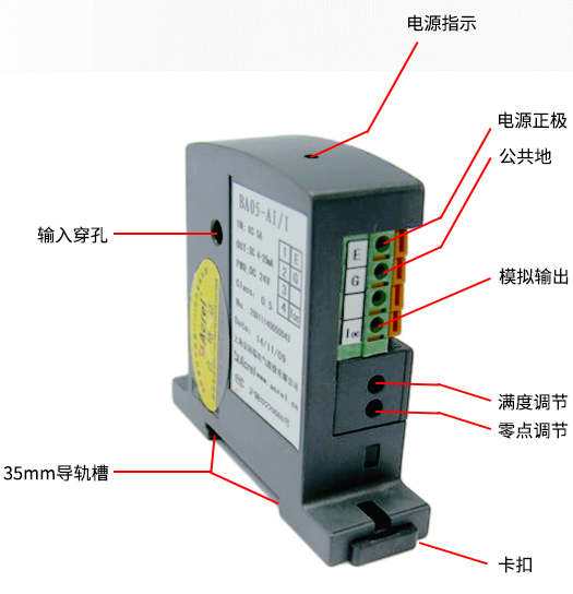 技術要求:輸入電流AC 0-50A;輸出DC 4-20mA;穿孔φ10mm;準確級0.5。