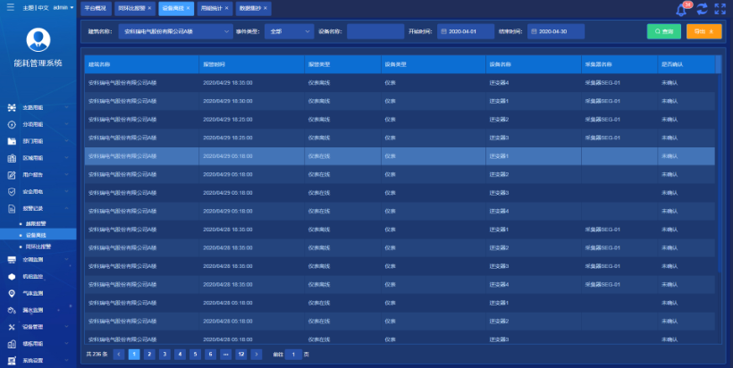 支持多種不同的報警類型,為保證平臺運行,提供儀表與網關的故障報警提醒,提供多種能耗預警模型供用戶選擇與配置。